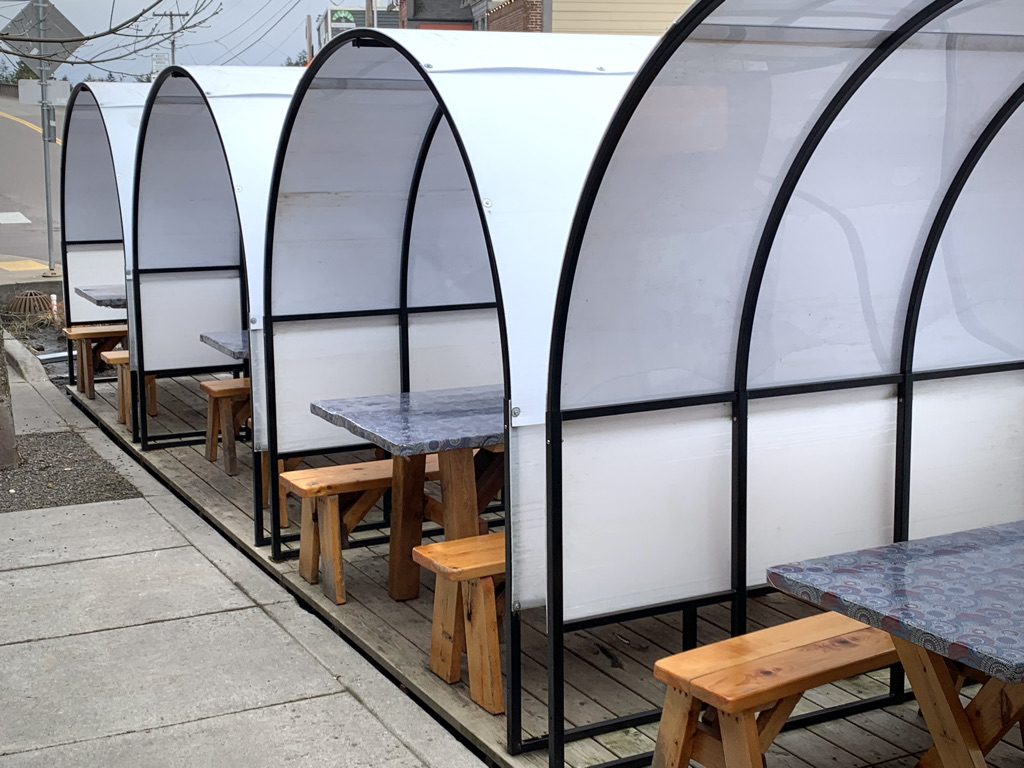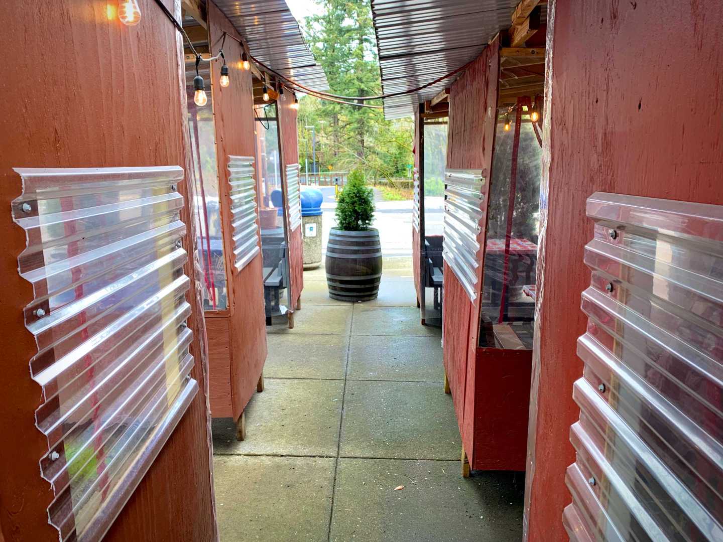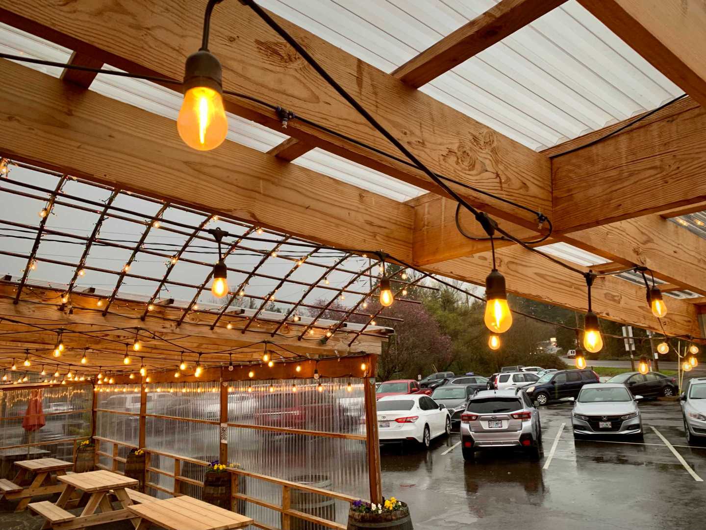 pub parking table shelter lamp