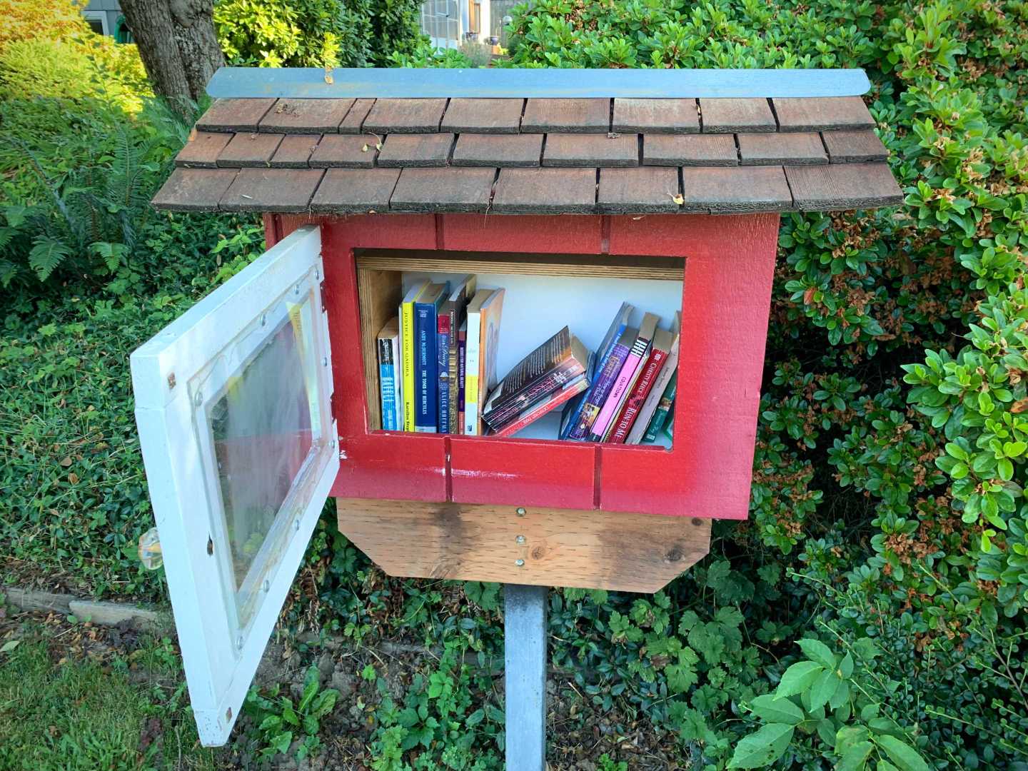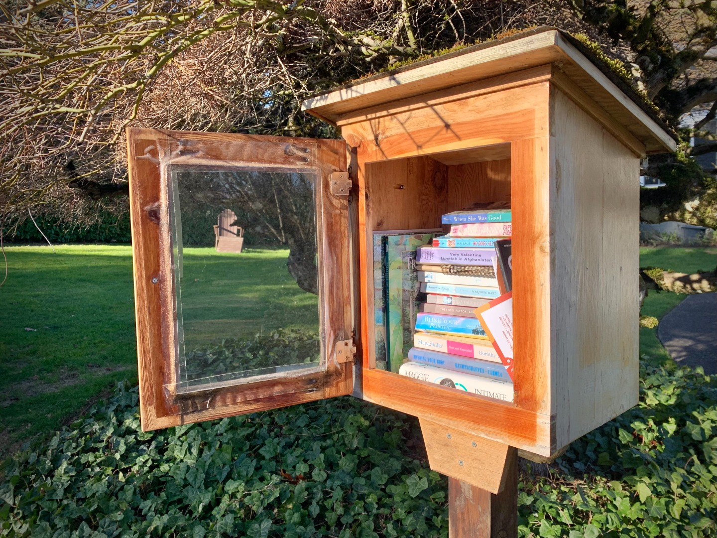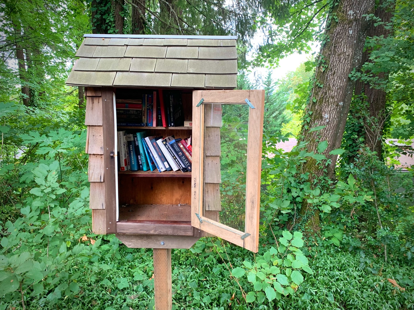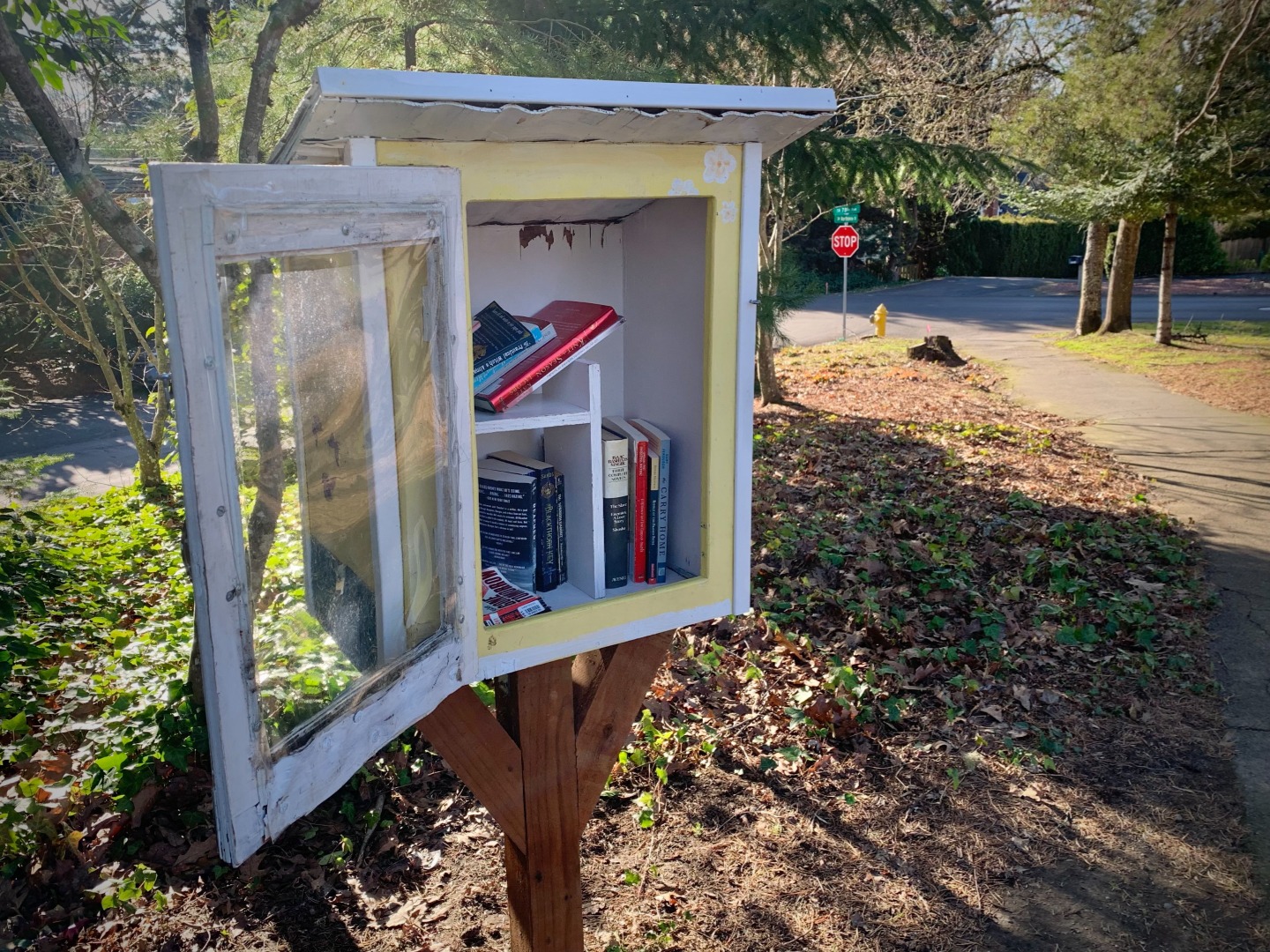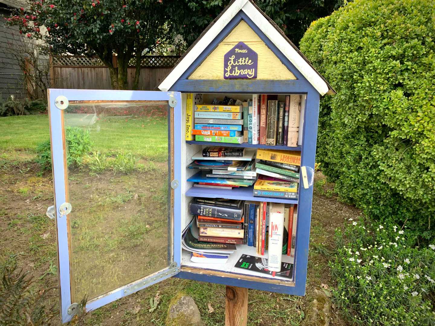 While walking my neighborhood I stopped to photograph a little library with the door open and the available titles visible. I've noticed more of these around so I started recording them. 3x2