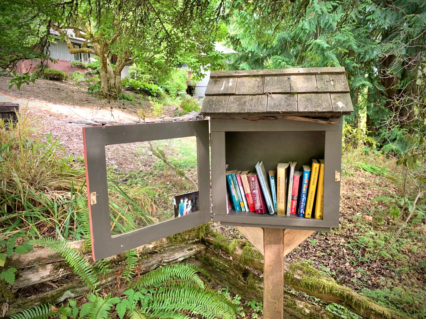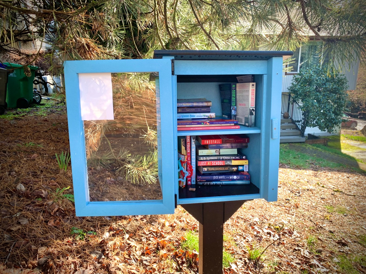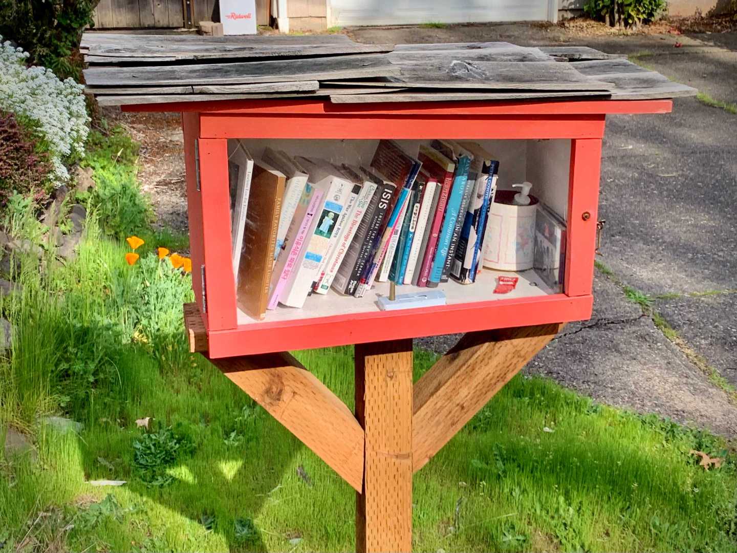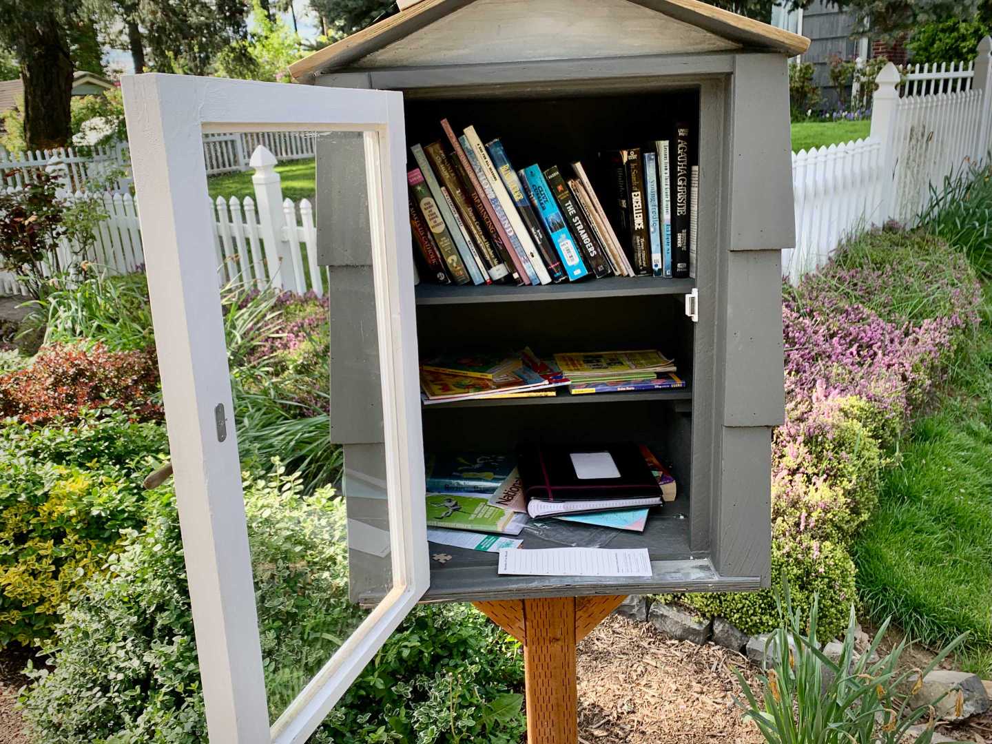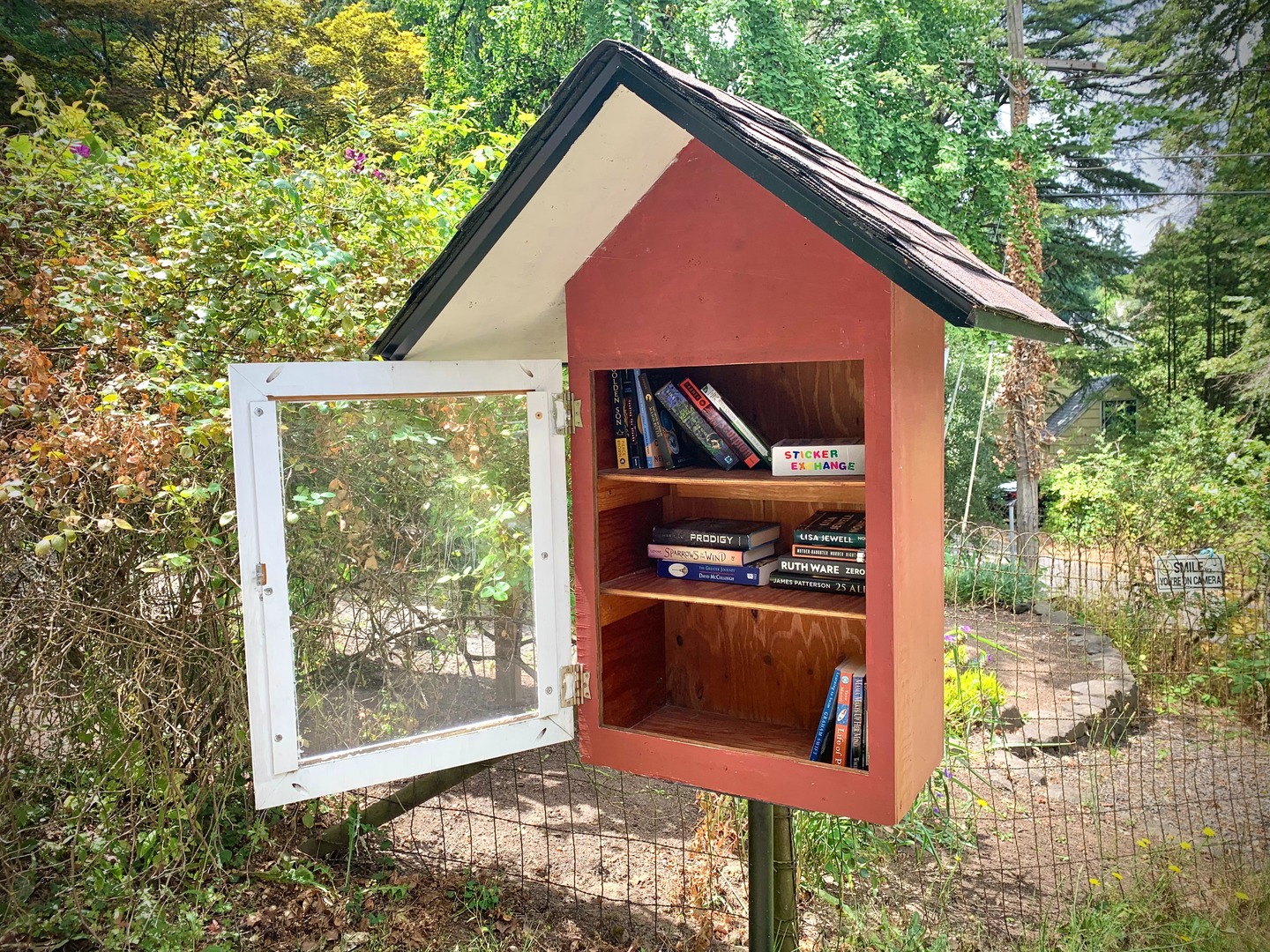 While walking my neighborhood I stopped to photograph a little library with the door open and the available titles visible. I've noticed more of these around so I started recording them. 3x2