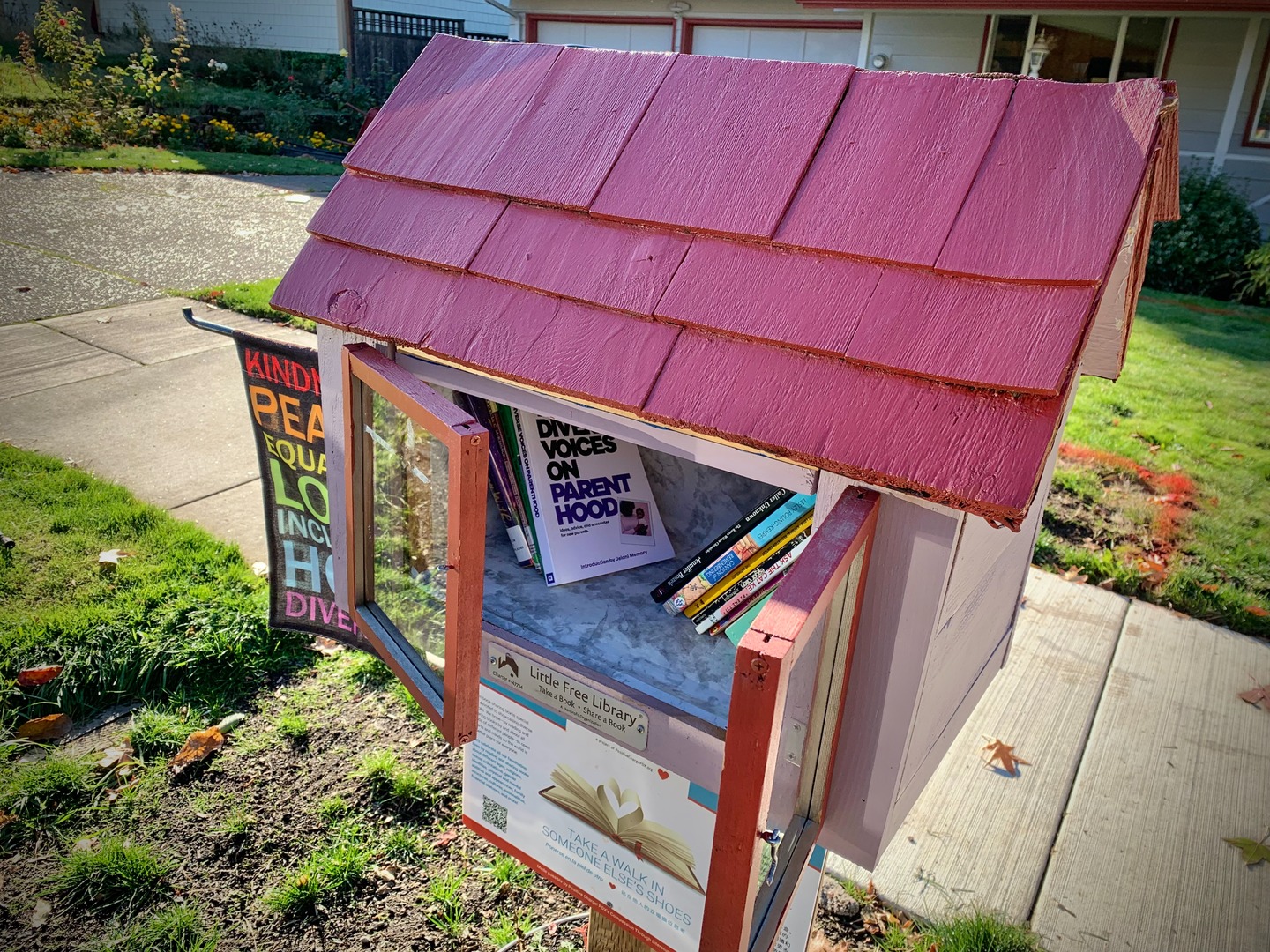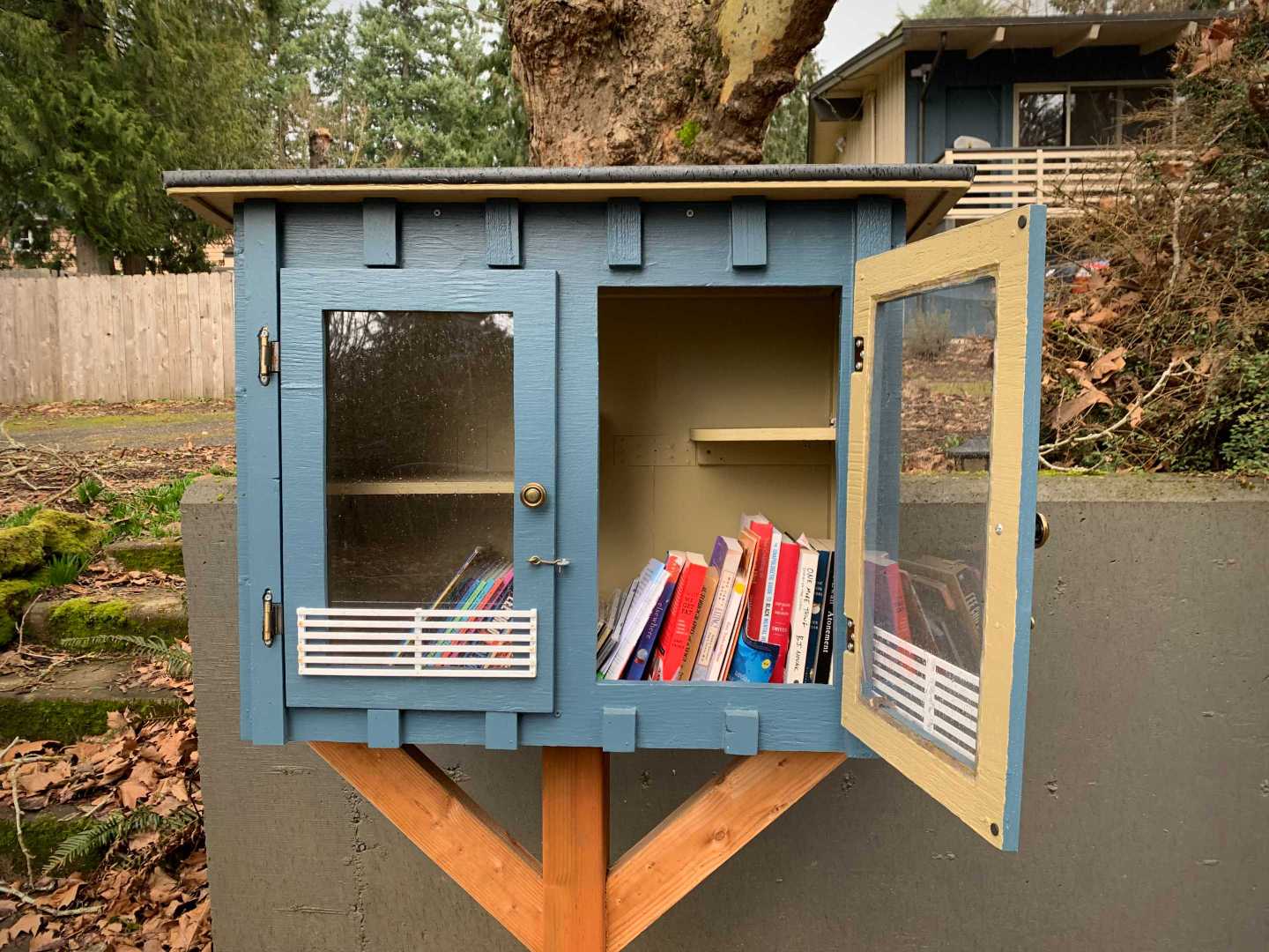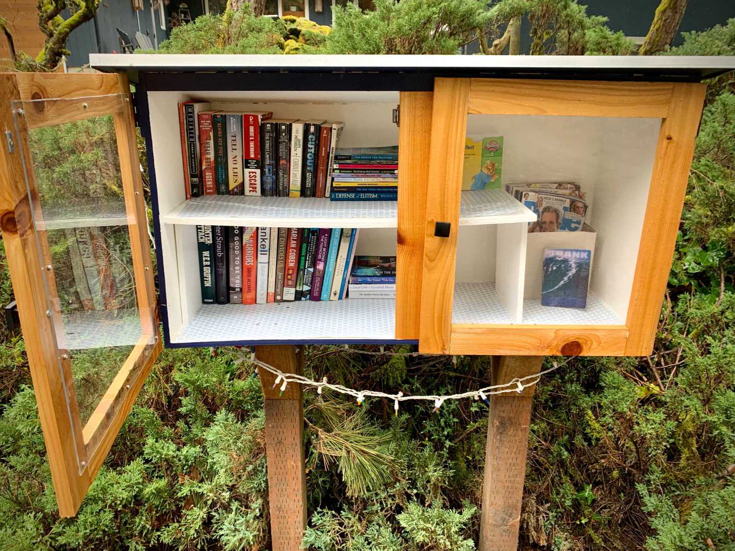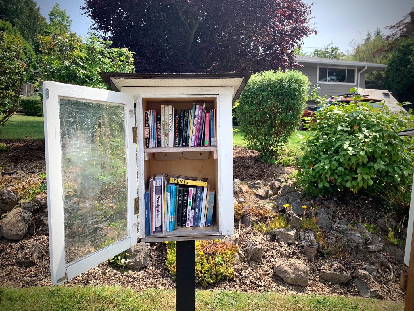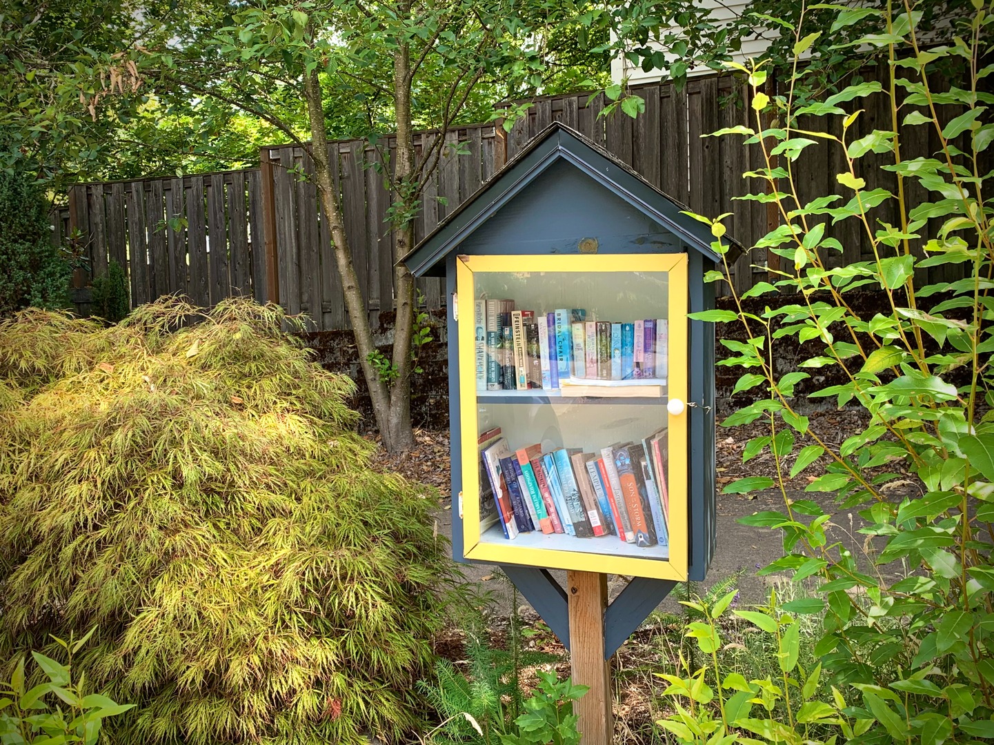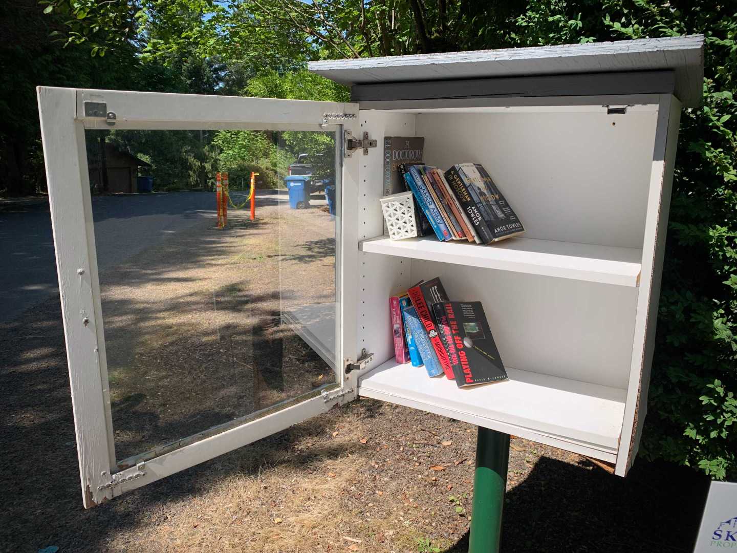While walking my neighborhood I stopped to photograph a little library with the door open and the available titles visible. I've noticed more of these around so I started recording them. 3x2