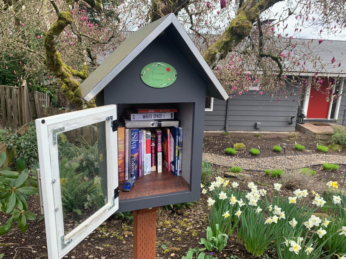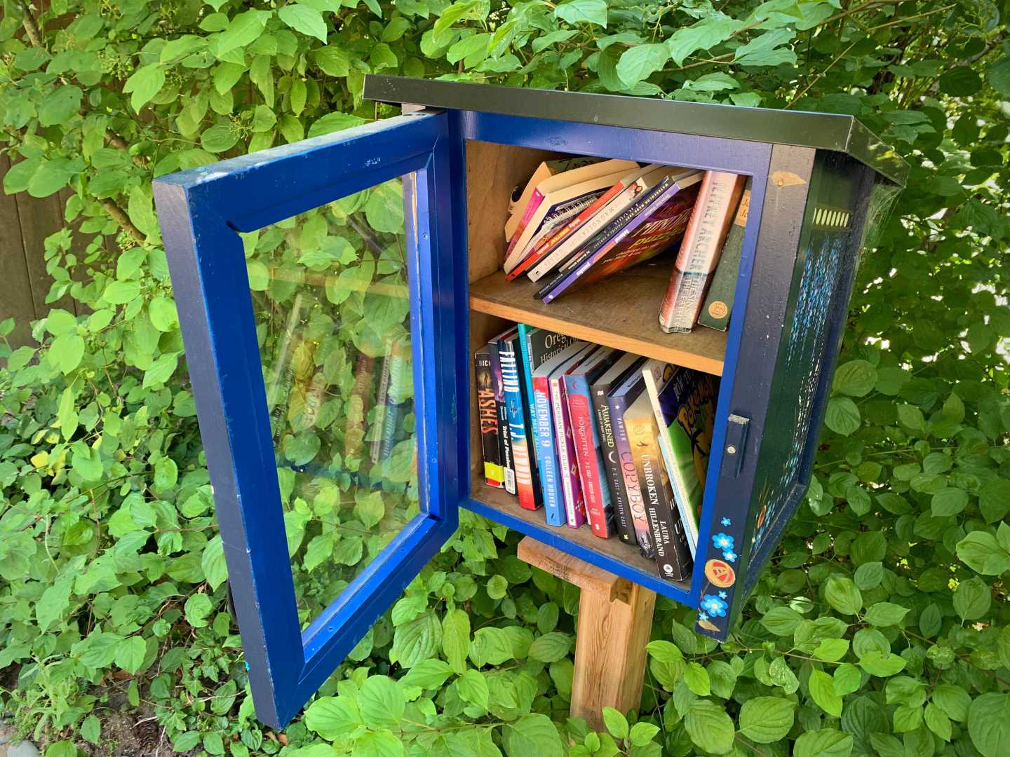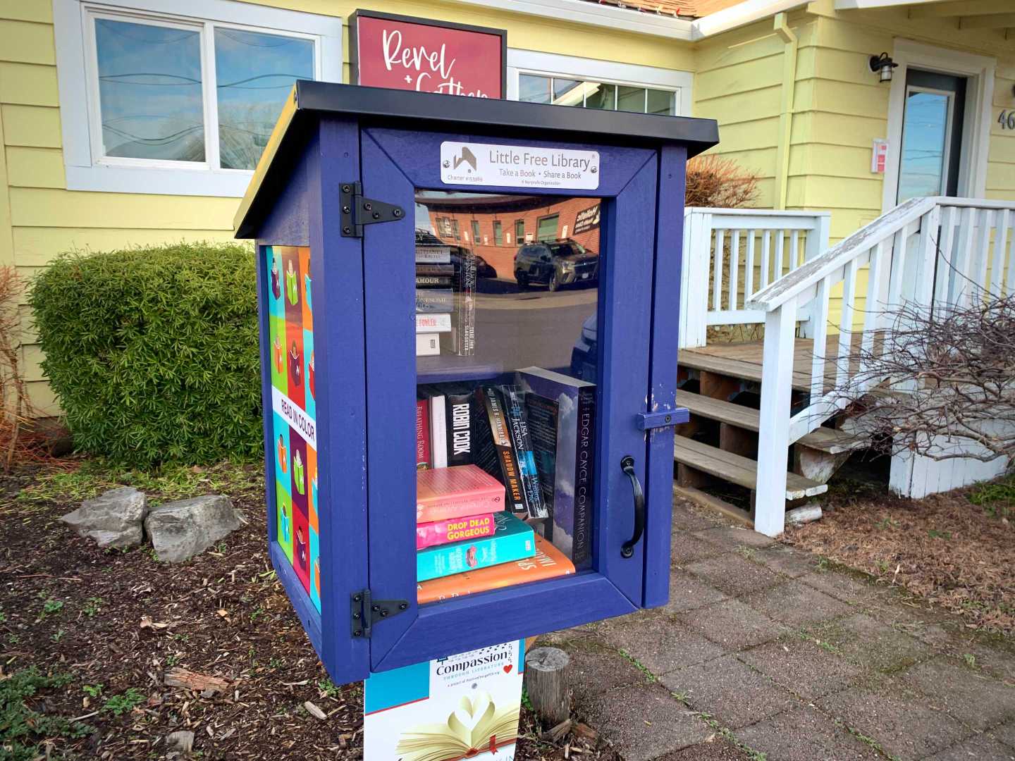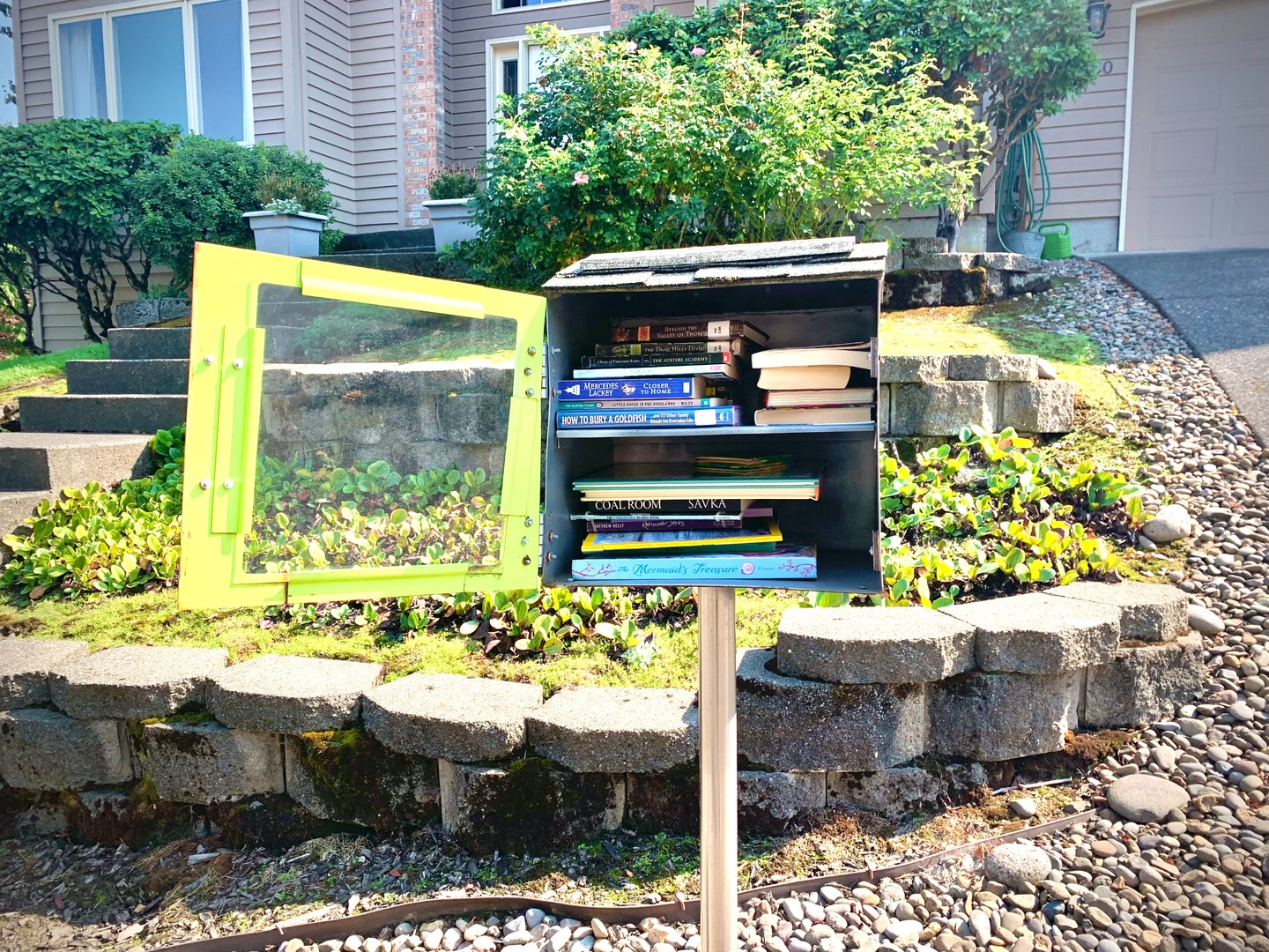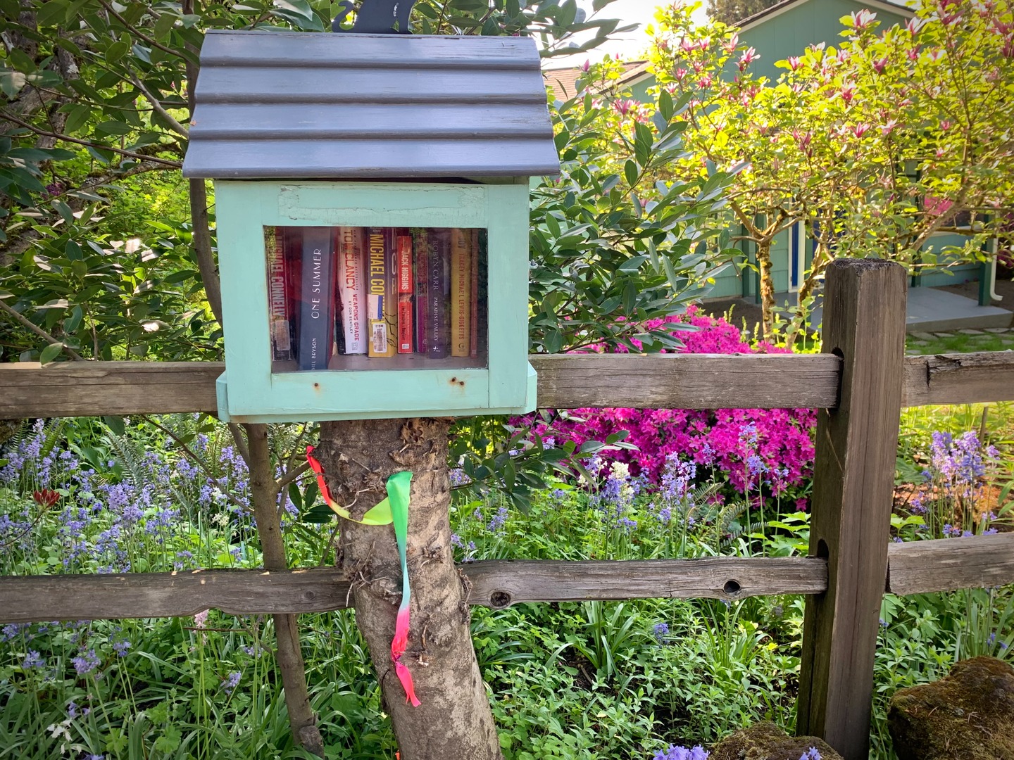 While walking my neighborhood I stopped to photograph a little library with the door open and the available titles visible. I've noticed more of these around so I started recording them. 3x2