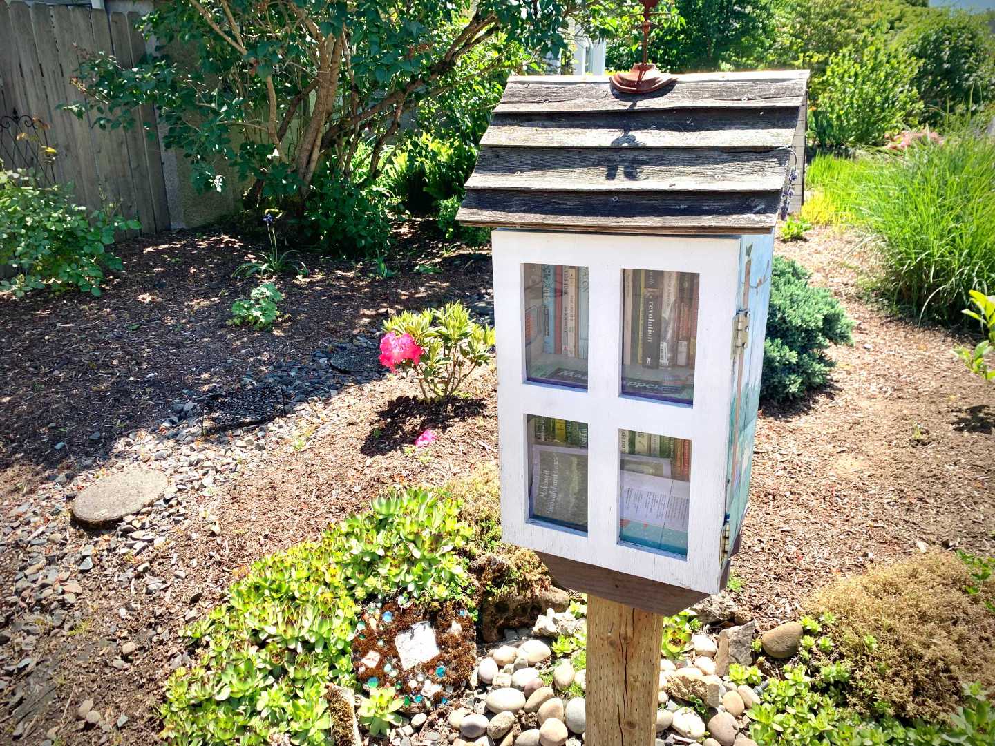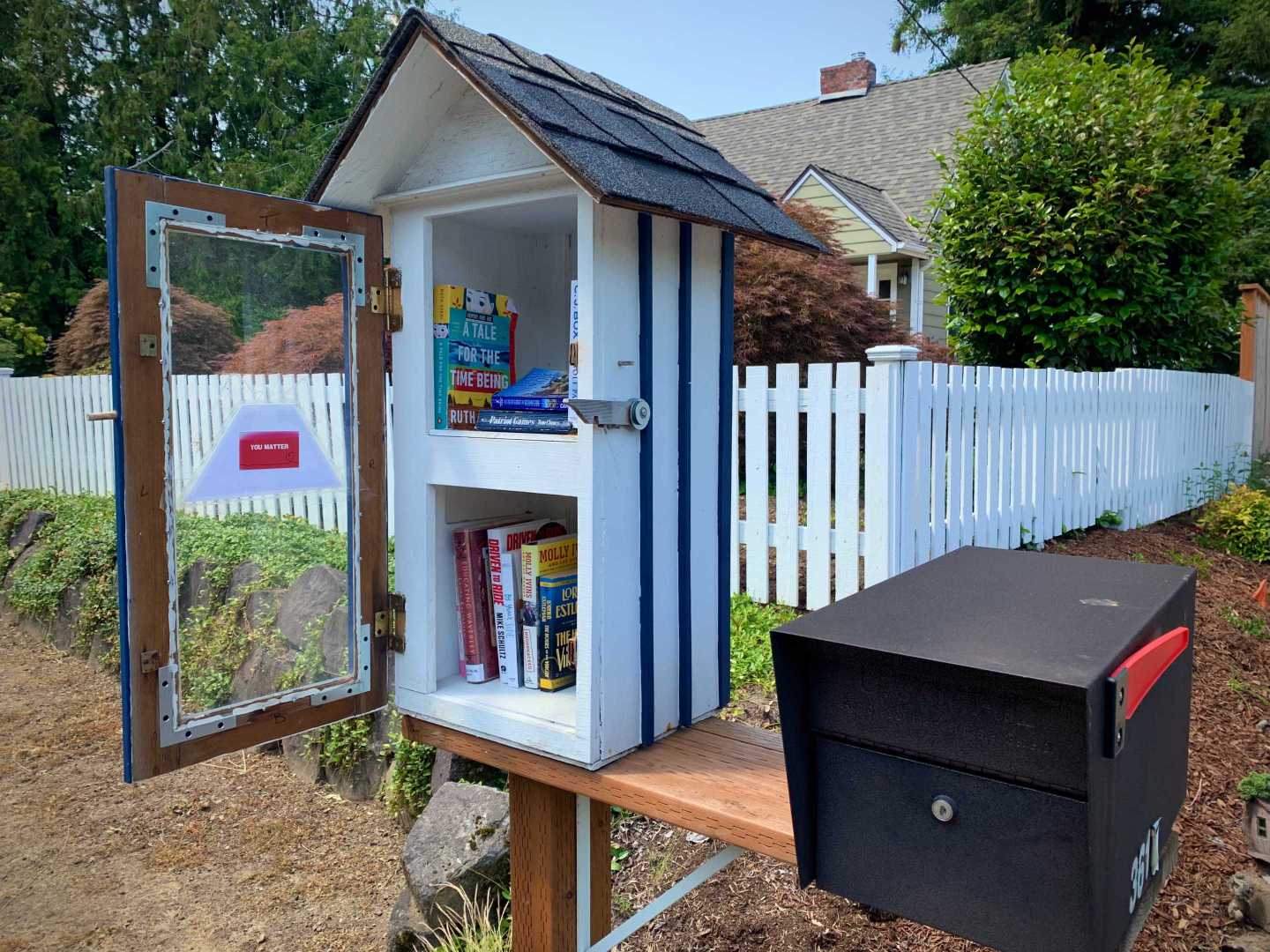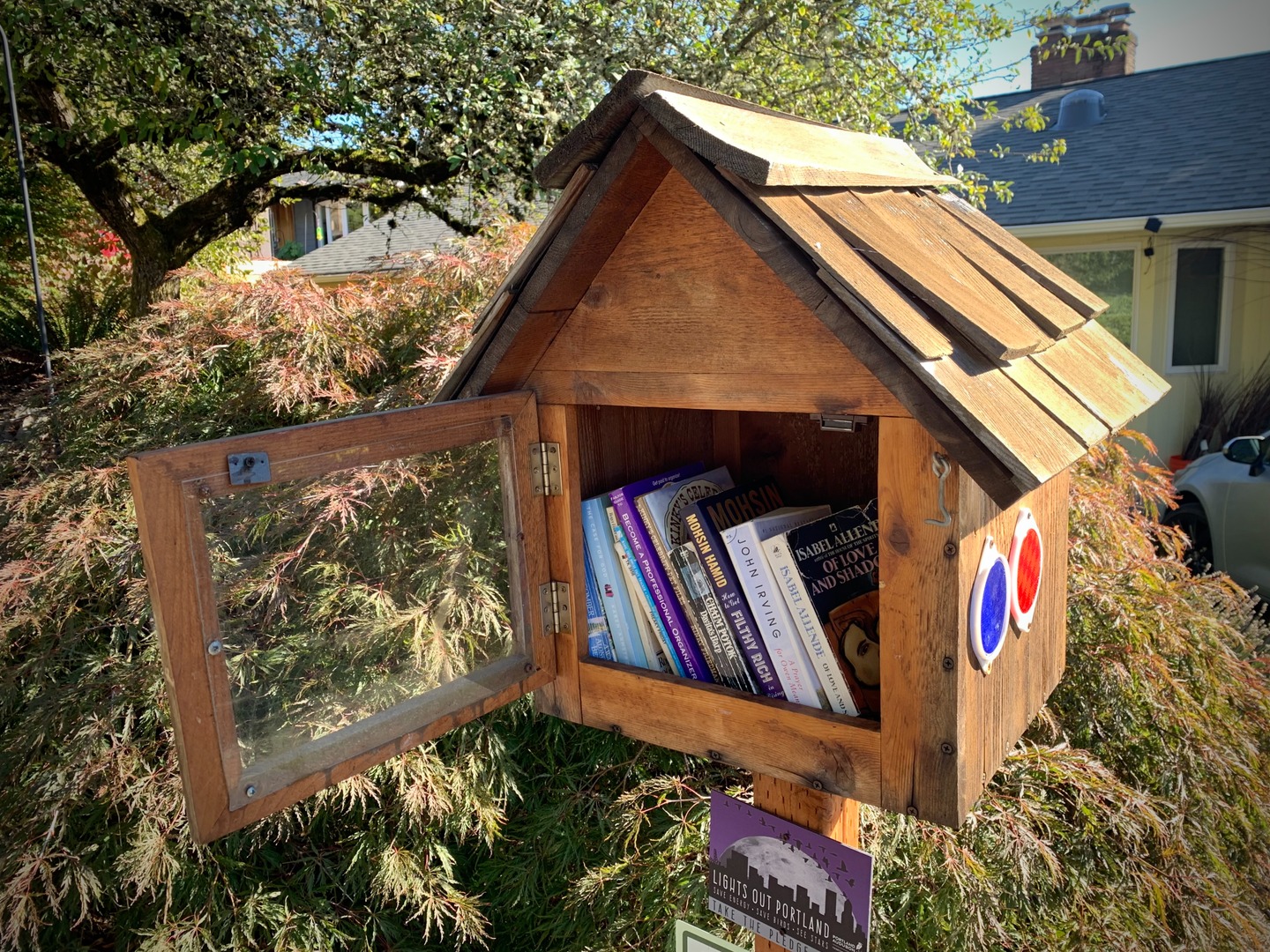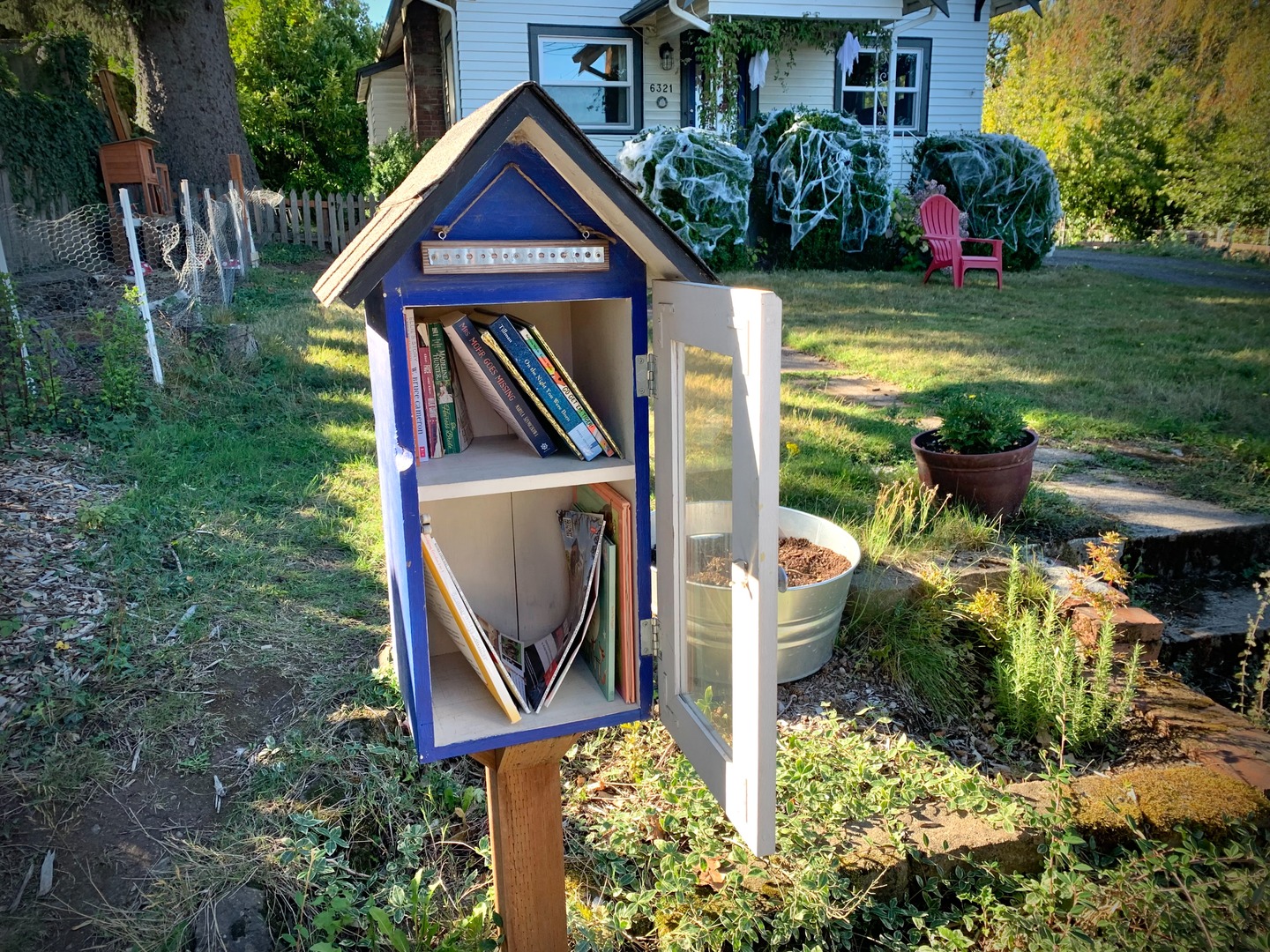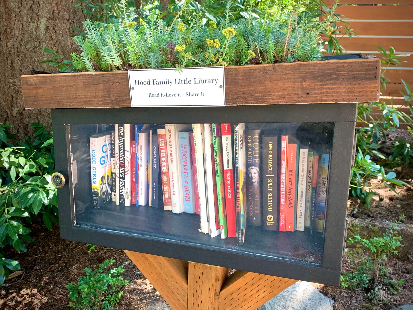 While walking my neighborhood I stopped to photograph a little library with the door open and the available titles visible. I've noticed more of these around so I started recording them. 3x2