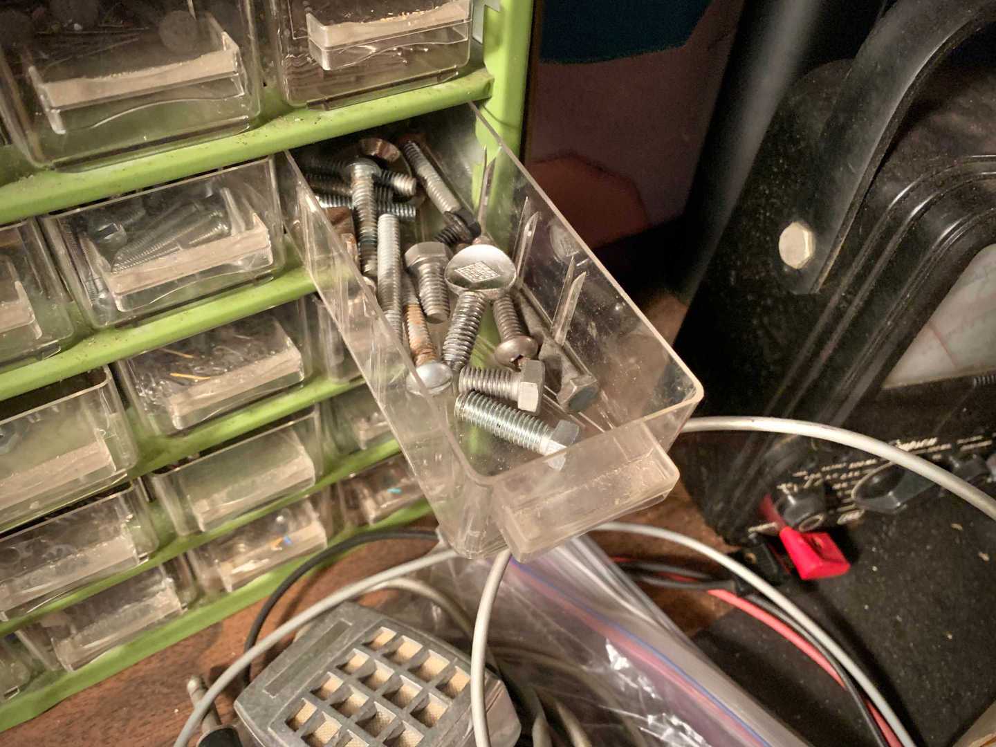 I meant to return the traveling bolt to road where I found it a week ago. I missed this opportunity on our walk today. So the bolt now rests with other miscellaneous bolts in a drawer dedicated to similar mysteries.