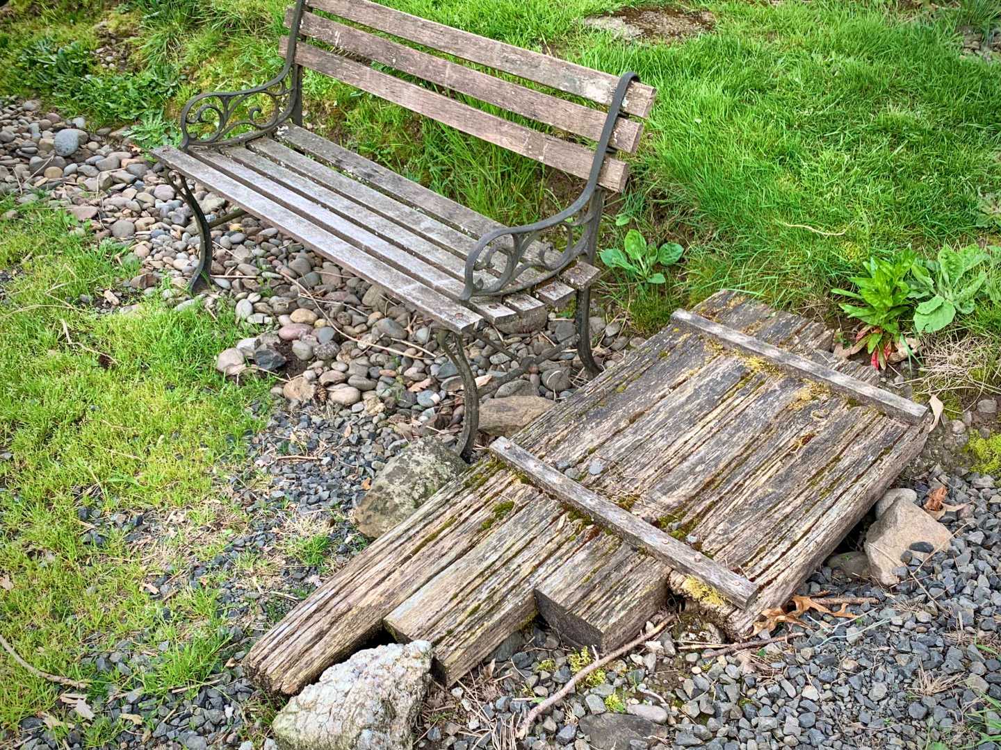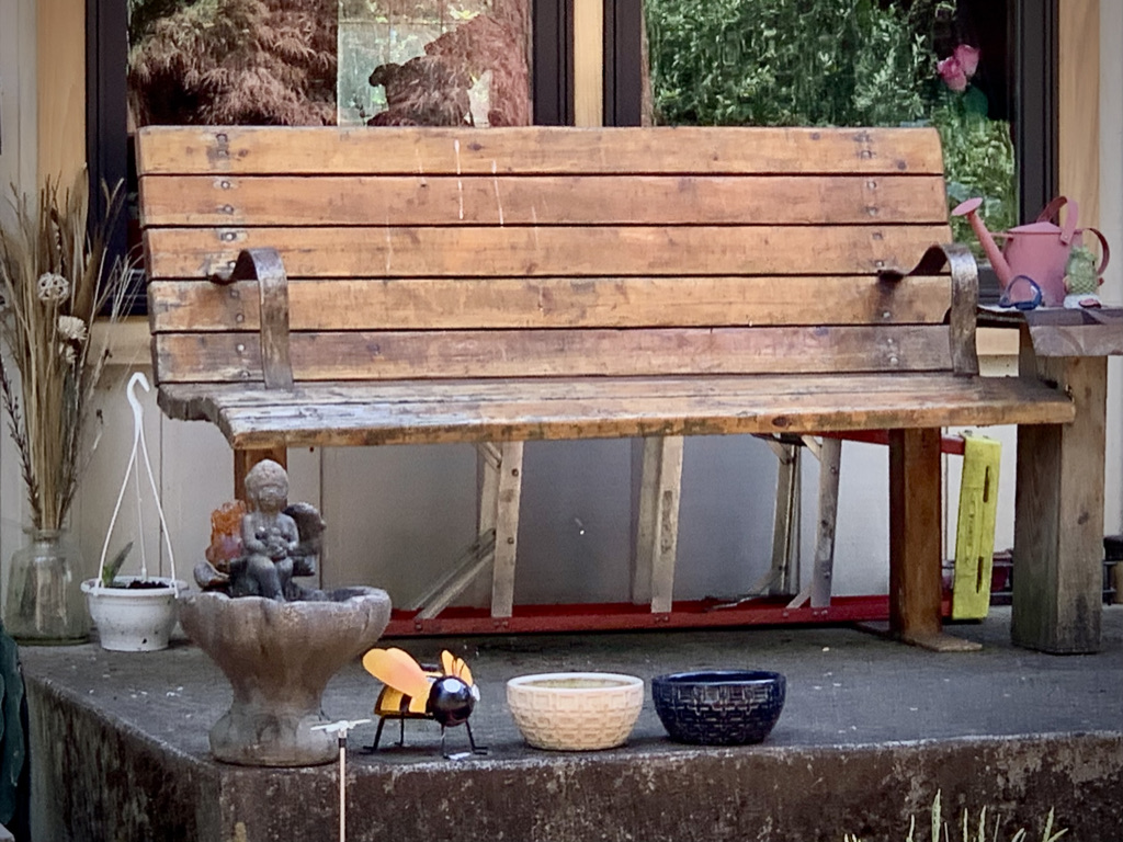 Some enjoy their neighborhood enough to add seating. We'll look for benches that have weathered the winter.