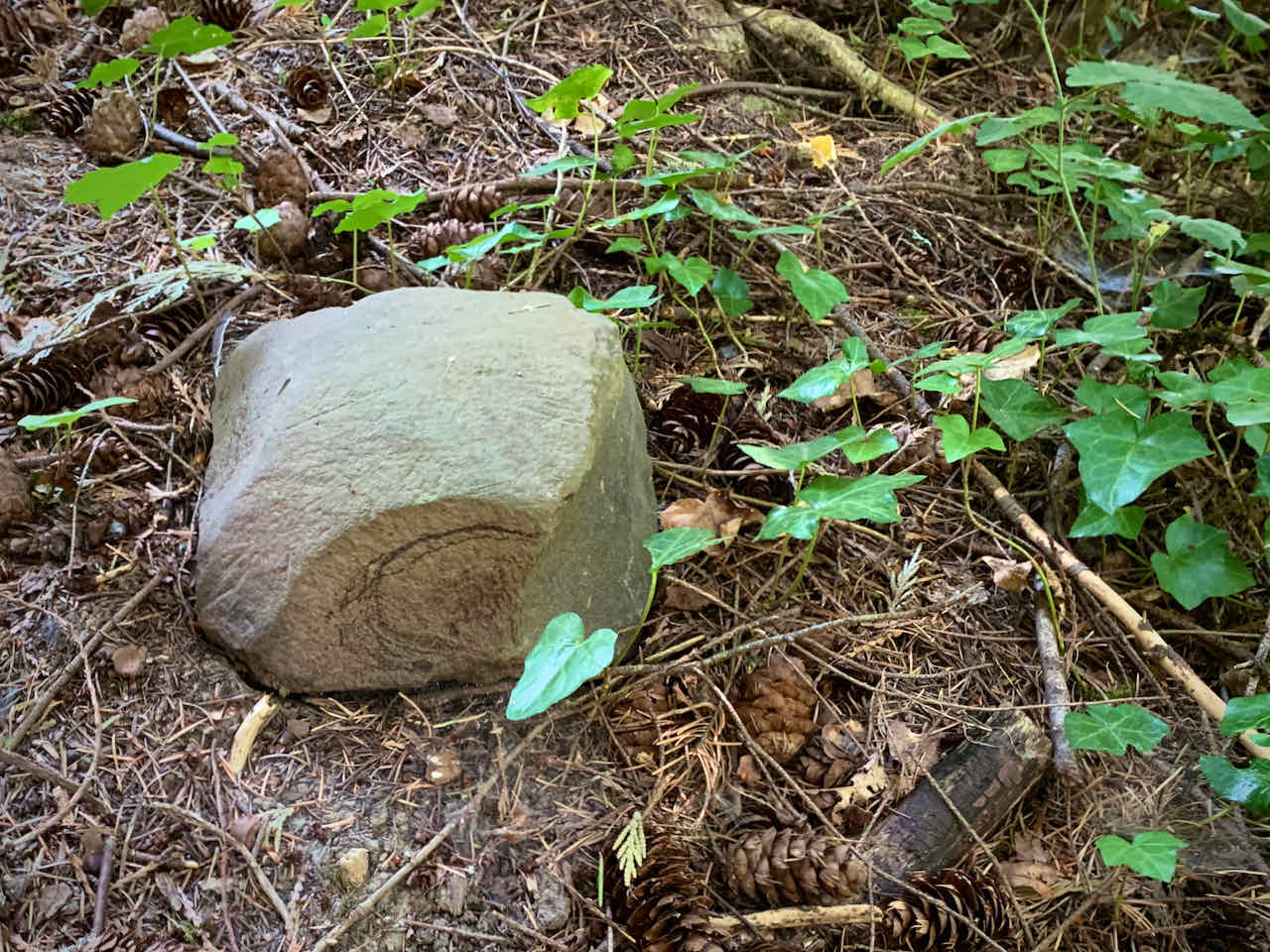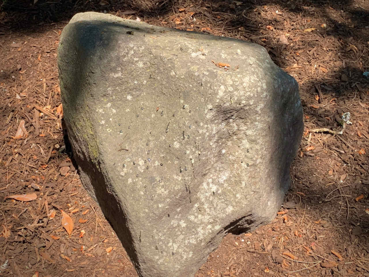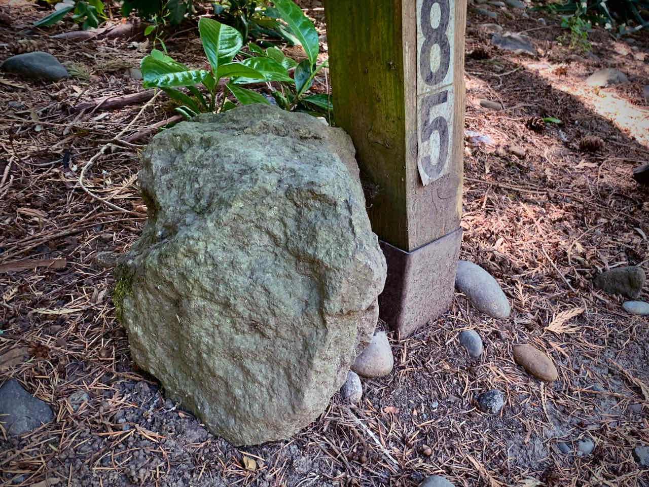 I ditch the bike and set out on foot so that I don't attract so much attention. Only once did I have to explain that it's an art project. Home owner at 6149 SW Miles then recounted the rock's history: dug up to plant a maple tree.