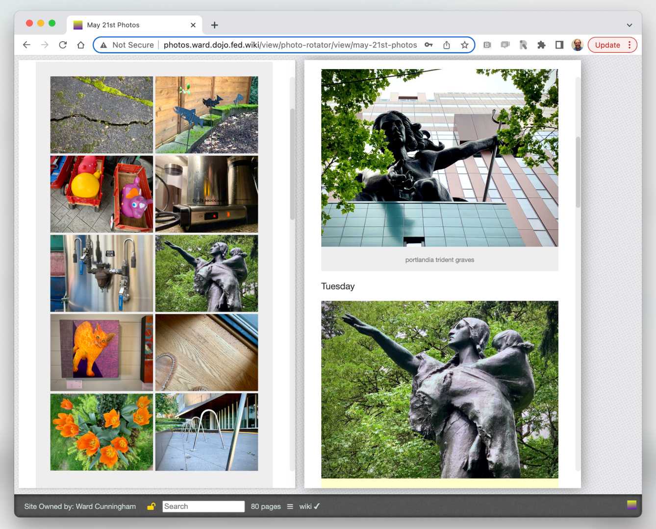 3. Each slug identified a page I knew to have seven photos, one for each day of the week. I could have fetched and parsed each page but I knew this was already done as a Survey used by other aggregations.